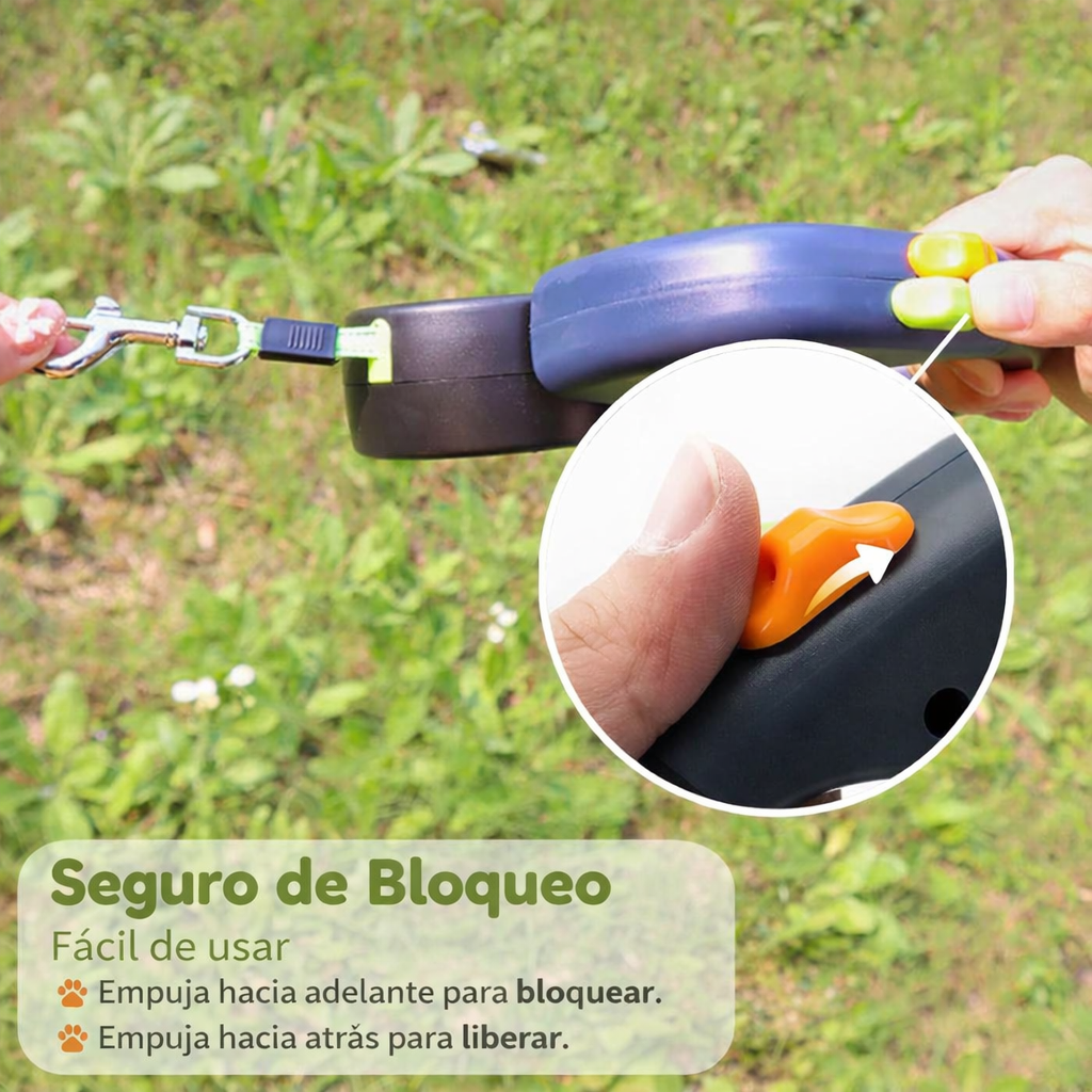 Para alargar la vida del mecanismo: Bloquee siempre la correa antes de que el perro de un tirón seco. Esto protege el muelle de acero interno y garantiza años de retracción perfecta.