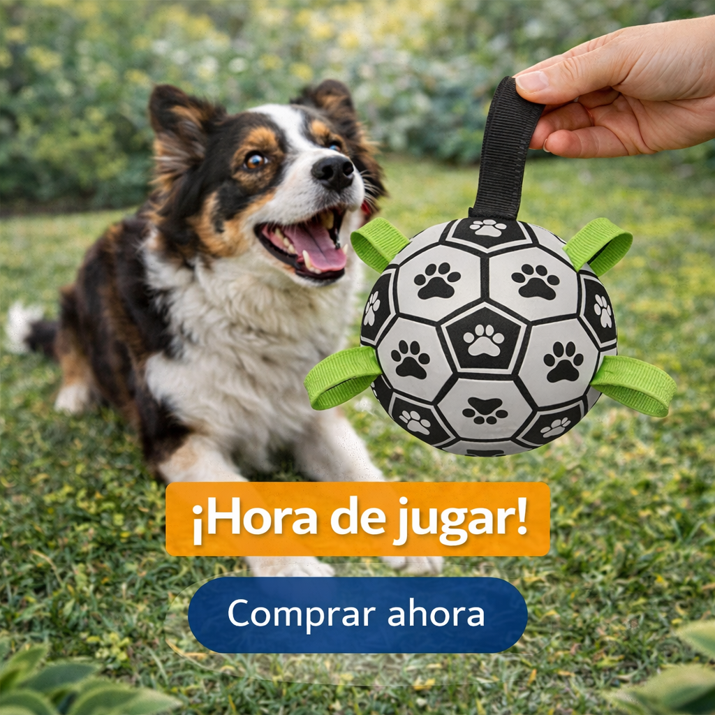 PELOTA DE FÚTBOL INTERACTIVA PARA PERROS CON AGARRES DE NAILON